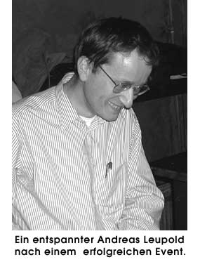 "Streetlife"München den 10. 9. 2002 Dass der nach ihr benannte Park im Münchener Osten die Kunst nicht nur im Namen trägt, sondern auch solcherart Ereignisse dort stattfinden, statuierte zum nunmehr 52. mal das K41 in seiner Reihe "Werkschau Münchener Photographen". Diesmal war gebürtige Franke Andreas Leupold an der Reihe. Einer seiner thematischen Schwerpunkte ist seit jeher das urbane Leben auf der Strasse und diesmal ging es explizit um das NewYork Streetlife. Präsentiert wurden die Arbeiten in einer, vom Künstler programmierten Multimediashow, bei der die einzelnen Photografien mit definiertem timing seriell angeordnet und mit verschiedenen Überblendungen verknüpft einen dramaturgischen Bogen bildeten.