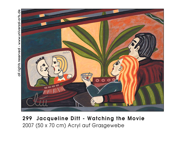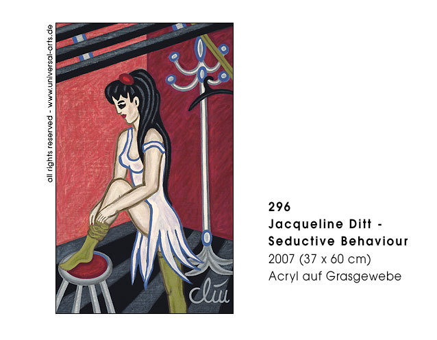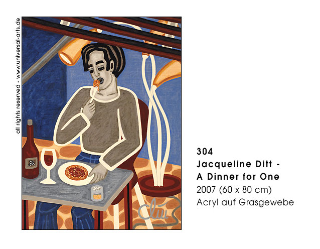 So with all anonymity of the singles and pairs a certain "confidenceness" or dissociated relationship with the others may develop, although one does not really know each other usually. - Exhibition 2007 - "Behind Venetian Blinds" - 12 paintings by Jacqueline Ditt.