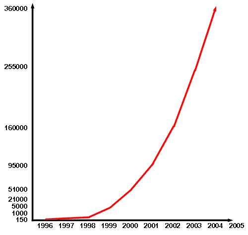 Diese Graphik zeigt die absolute Anzahl von Besuchern von 1996 bis 2004.